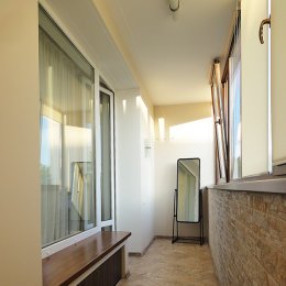 Большой застеклённый и утеплённый балкон.